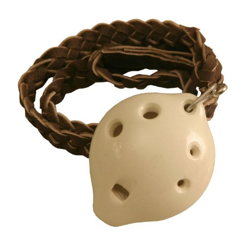 Ocarina, Necklace, Soprano D 3x1.5", White (Item Code: ONSD-W) Ocarina, Necklace, Soprano D. White Glazed clay, six finger holes, over an octave of tones, leather necklace included. 3 Lx 1.5 W x 1.25 inches Deep. Clay molded, variations in the final product should be expected.